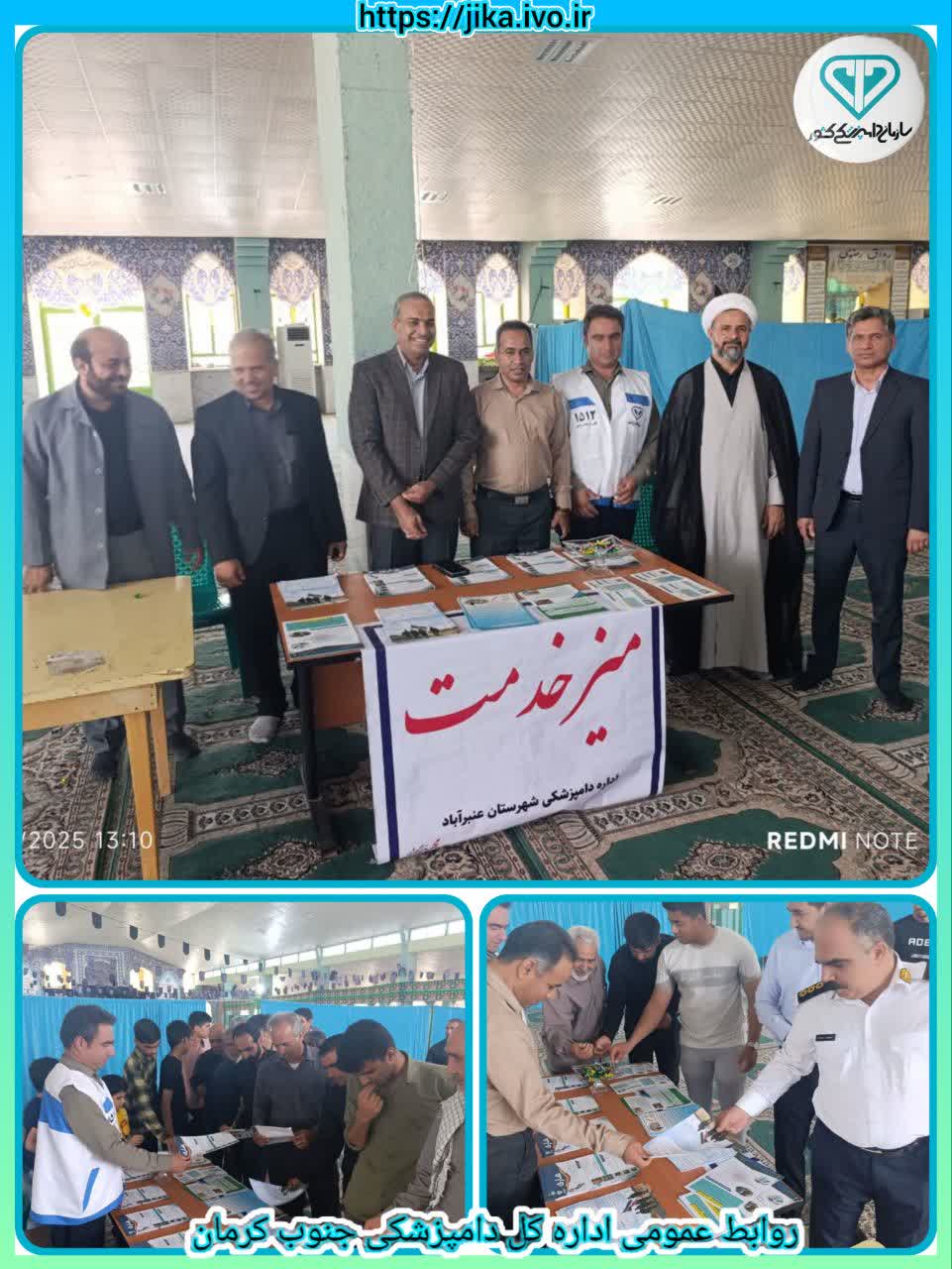 با هدف خدمات مطلوبتر به مردم شریف شهرستان عنبرآباد، روز جمعه مورخ ۱۷ مردادماه ۱۴۰۴، همزمان با اقامه نماز جمعه در این شهرستان، اداره دامپزشکی عنبرآباد با برپایی میز خدمت به استقبال نمازگزاران و شهروندان آمد. این اقدام که با هدف پاسخگویی مستقیم به سوالات، رسیدگی به درخواستها و ارائه مشاورههای تخصصی در حوزه دامپزشکی صورت گرفت، مورد استقبال گسترده نماز گزاران ومسئولین قرار گرفت. رئیس و کارشناسان اداره دامپزشکی شهرستان عنبرآباد در این میز خدمت، ضمن پاسخگویی به مراجعات مردمی، به ارائه اطلاعات لازم در خصوص پیشگیری و کنترل بیماریهای دامی، بهداشت فرآوردههای خام دامی، واکسیناسیون و سایر خدمات دامپزشکی پرداختند. در ادامه حجتالاسلام و المسلمین علی اکبر منصفی، امام جمعه محترم شهرستان عنبرآباد، به همراه همت بلوچی فرماندار ، معاون سیاسی فرمانداری و جمعی از مسئولین شهرستان ، از این میز خدمت بازدید به عمل آوردند. ایشان ضمن تقدیر و تشکر از تلاشهای مجموعه دامپزشکی عنبرآباد در جهت خدمترسانی به مردم، بر اهمیت اینگونه اقدامات در افزایش رضایتمندی عمومی و تسهیل دسترسی مردم به خدمات دولتی تاکید کردند.