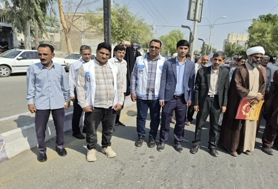 حضور پرسنل اداره دامپزشکی شهرستان منوجان در راهپیمایی روز جمعه در حمایت از مردم غزه.