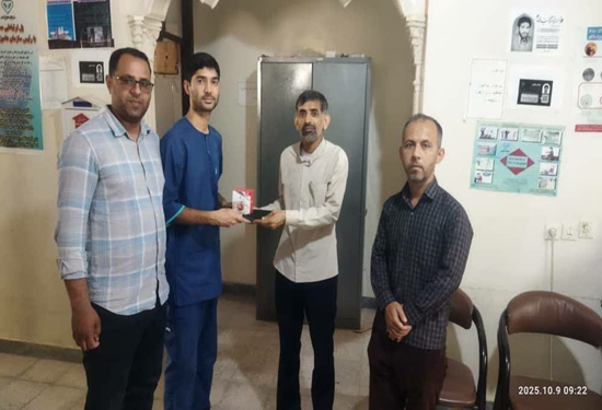 «اهدای لوح تقدیر رئیس اداره دامپزشکی شهرستان منوجان به دکتر جلالی، کارشناس اداره، به مناسبت هفته دامپزشکی